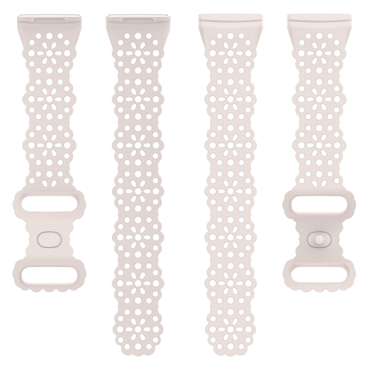 Correa de Reloj para Fitbit Versa 4 / 3 / Sense 1 / 2 Silicona Hueca de Encaje (Blanco Lunar)