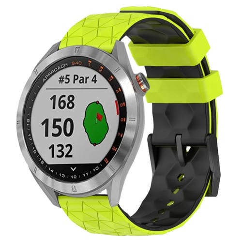Banda de Reloj Garmin Approach S40 Silicona 20mm Dos Colores Fútbol (Verde Lima + Negro)