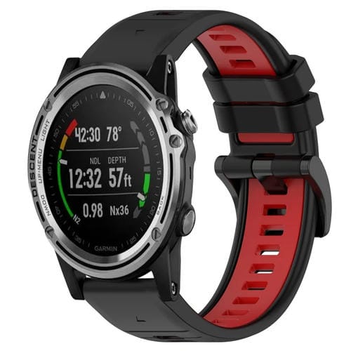 Correa de silicona para Garmin Descent Mk 1 26mm Sports bicolor (Negro + Rojo)