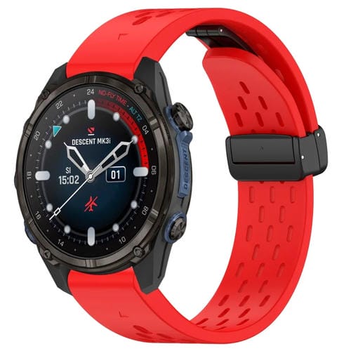 Correa de silicona para Garmin Descent Mk3I 43mm 20mm con hebilla plegable magnética (Rojo)