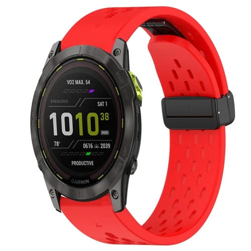 Correa de Reloj para Garmin Enduro 2 Silicona con Orificio y Hebilla Plegable 26mm (Rojo)