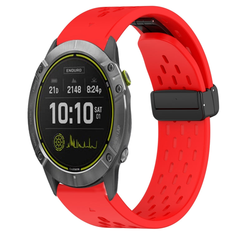Correa de Reloj de Silicona para Garmin Enduro con Orificio y Hebilla Plegable 26mm (Rojo)