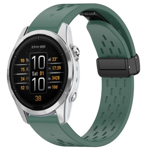 Correa de Reloj para Garmin Epix Pro 42mm 20mm Silicona con Hebilla Plegable Magnética (Verde Oscuro)
