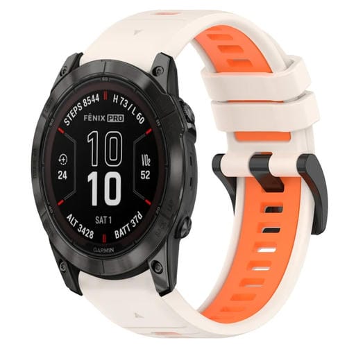 Pour Garmin Epix Pro 51 mm 26 mm Bracelet de montre en silicone bicolore sport (Starlight + Orange)