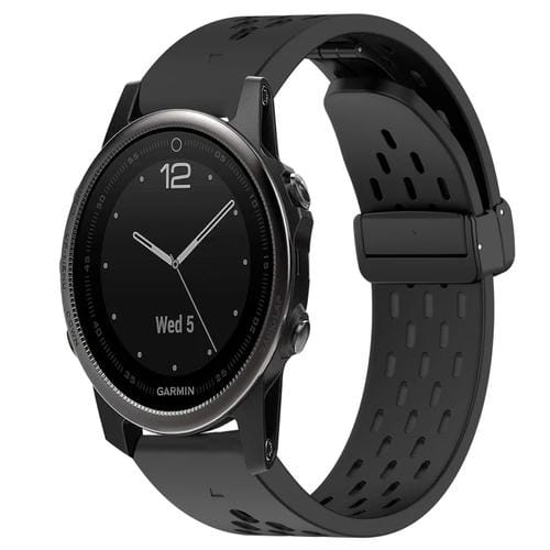 Correa de Reloj Silicona para Garmin Fenix 5S Plus con Orificio y Hebilla Plegable de 20mm (Negro)