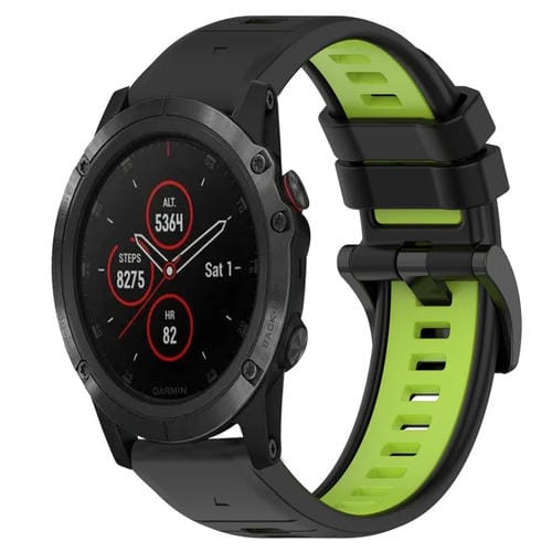 Correa de Silicona para Garmin Fenix 5X Plus 26mm Sports Two-Color (Negro + Verde Lima)