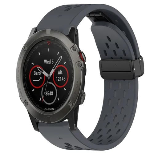 Correa de Reloj silicona para Garmin Fenix 5X Sapphire 26mm con Orificio y Hebilla Plegable (Gris Oscuro)