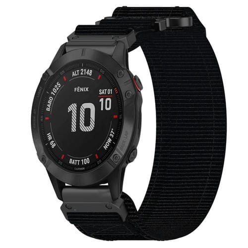 Correa de Reloj para Garmin Fenix 6 con Cierre de Gancho y Bucle de Nailon de 22mm (Negro)