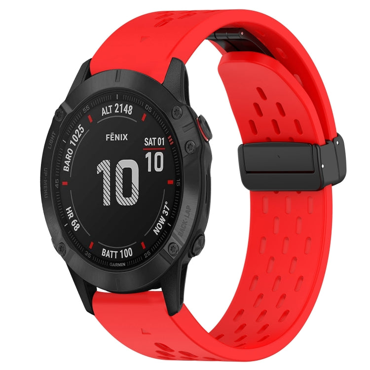 Correa de Reloj de Silicona para Garmin Fenix 6 Pro GPS con Orificio y Hebilla Plegable de 22mm (Rojo)