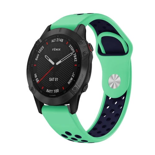 Pour Garmin Fenix ​​​​6 Sapphire GPS 22 mm Sports Bracelet de montre en silicone respirant (vert menthe + bleu nuit)