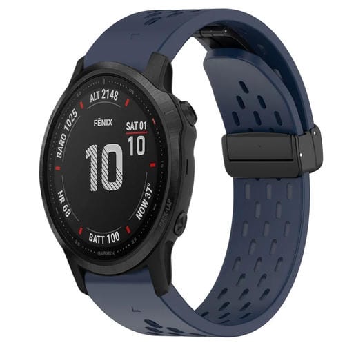 Correa de Silicona para Garmin Fenix 6S con Orificio y Hebilla Plegable 20mm (Azul Medianoche)