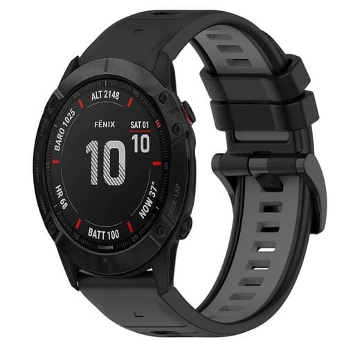 Correa silicona deportiva Garmin Fenix 6X Sapphire 26mm dos colores (Negro + Gris)