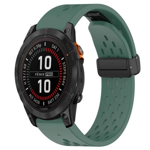 Correa de Reloj Silicona Garmin Fenix 7S Pro 42mm 20mm con Orificio para Hebilla Plegable (Verde Oscuro)