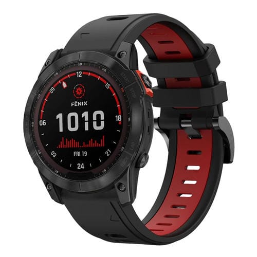 Banda de Reloj Silicona Deportiva para Garmin Fenix 7X 26mm (Negro + Rojo)