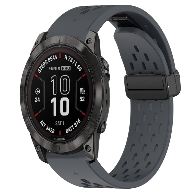 Correa de Reloj de Silicona para Garmin Fenix 7X Pro 51mm 26mm con Hebilla Plegable (Gris Oscuro)