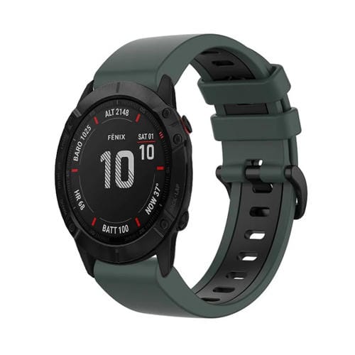 Correa Silicona Sports Band Garmin Fenix 6X 26mm Dos Colores (Olive Green+Black)
