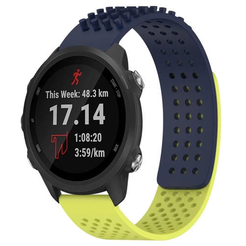 Correa de Silicona para Garmin Forerunner 245 con Puntos 3D Transpirables y Orificios 20mm (Azul Medianoche + Verde Lima)