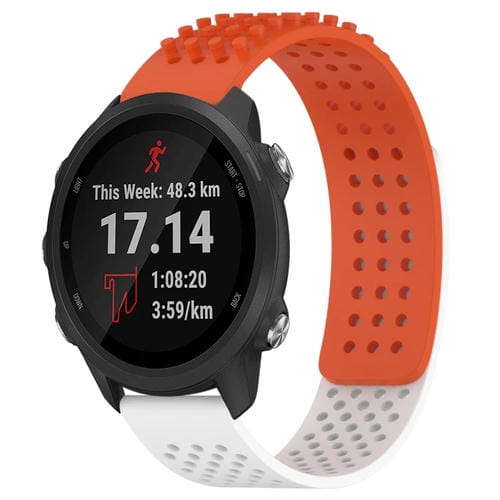 Correa de Silicona para Garmin Forerunner 245 Music con Puntos 3D Transpirables y Orificios de 20mm (Naranja + Blanco)