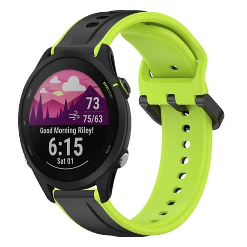 Banda de Reloj para Garmin Forerunner 255 Music Silicona Dos Colores Bucle Convexo 22mm (Negro + Lima)