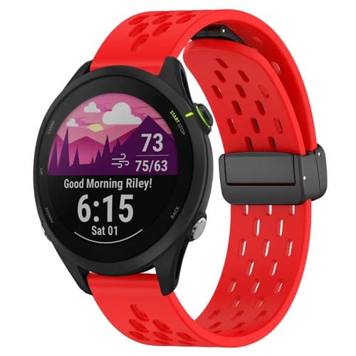 Correa de Silicona para Garmin Forerunner 255 Music con Cierre Magnético Plegable de 22mm (Rojo)