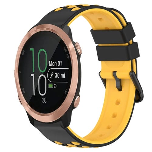 Banda de Reloj Garmin Forerunner 645 Music 20mm Silicona Porosa Dos Colores (Negro + Amarillo)