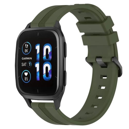 Banda de Reloj de Silicona para Garmin Forerunner Sq2 20mm con Rayas Cóncavas (Verde Militar)