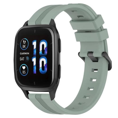 Correa de Reloj para Garmin Forerunner Sq2 20mm Silicona con Rayas Cóncavas (Verde Grisáceo)