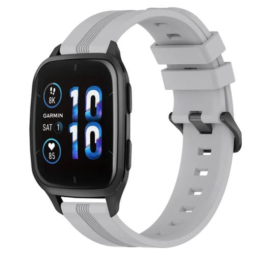 Banda de Reloj Silicona para Garmin Forerunner Sq2 Music 20mm Cóncava a Rayas (Gris)