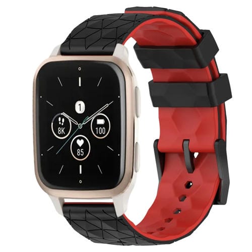 Banda de Reloj Garmin Forerunner Sq2 Music 20mm Silicona Patrón de Fútbol (Negro + Rojo)