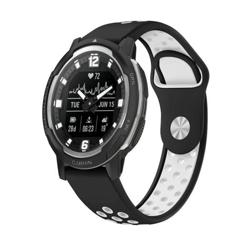 Pour Garmin Instinct Crossover 22 mm Sports Bracelet de montre en silicone respirant (noir + blanc)