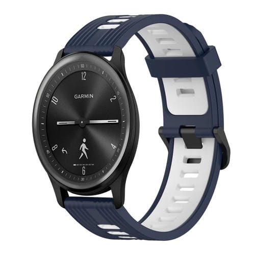 Banda de Reloj de Silicona para Garmin Move Sport 20mm Patrón Vertical Dos Colores (Azul Oscuro+Blanco)