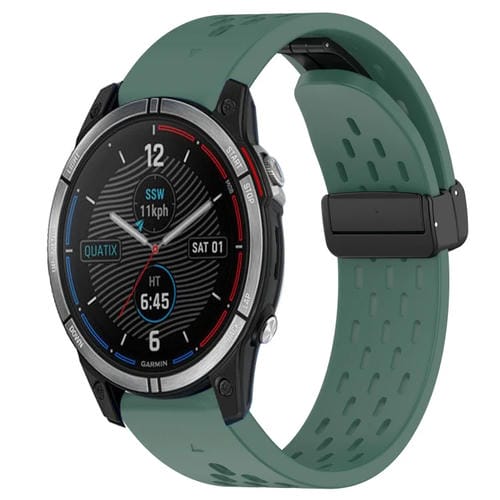 Correa de Reloj para Garmin Quatix 7 Silicona con Orificio y Hebilla Plegable 22mm (Verde Oscuro)