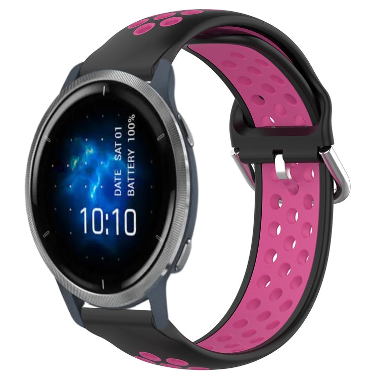 Correa de Reloj Garmin Venu 2 22mm Silicona Deportiva Transpirable Perforada (Negro + Rojo Rosa)