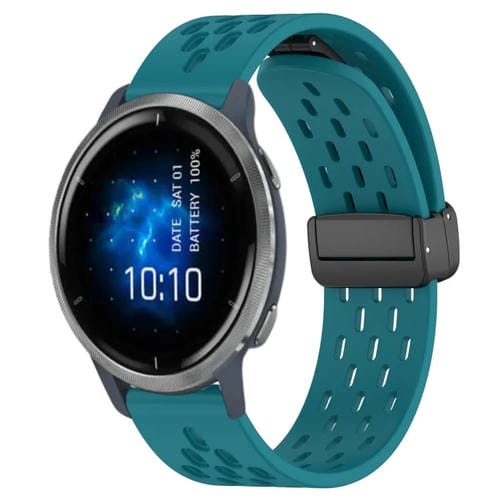Correa de Reloj para Garmin Venu 2 de Silicona con Cierre Magnético Plegable de 22mm (Verde Oculto)