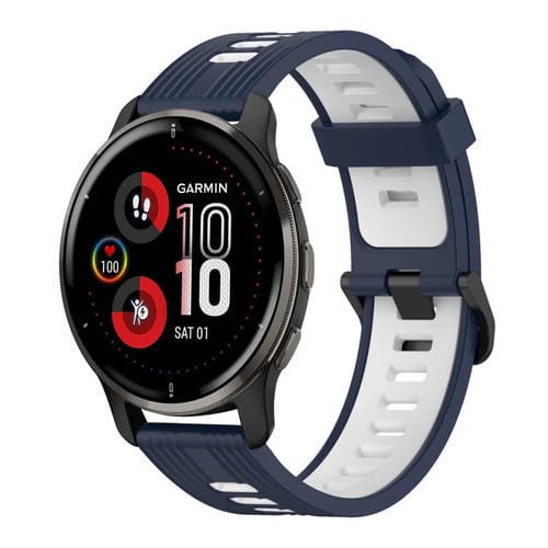 Banda de Reloj silicona Garmin Venu 2 Plus 20mm patrón dos colores (Azul Oscuro+Blanco)