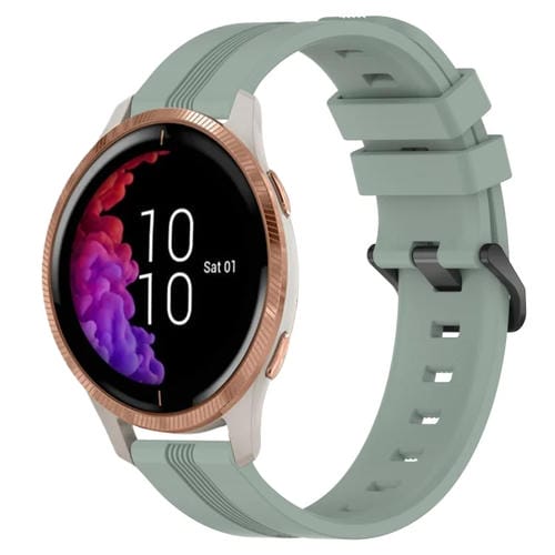 Correa de Reloj para Garmin Venu de Silicona con Rayas Cóncavas de 20mm (Verde Grisáceo)
