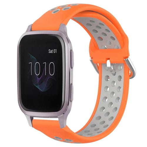 Correa de Reloj para Garmin Venu Sq 20mm Silicona Deportiva Transpirable Perforada (Naranja + Gris)
