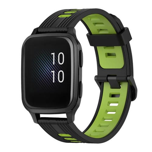 Banda de Reloj de Silicona para Garmin Venu Sq 20mm Patrón Vertical Dos Colores (Negro+Verde)