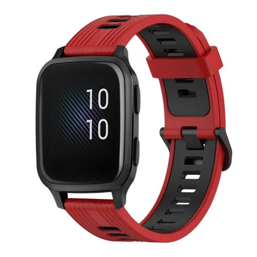 Banda de Reloj de Silicona para Garmin Venu Sq 20mm Patrón Vertical Dos Colores (Rojo+Negro)