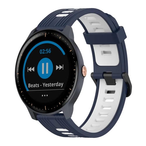 Banda de Reloj de Silicona para Garmin Vivoactive 3 Música 20mm Patrón Vertical (Azul Oscuro+Blanco)