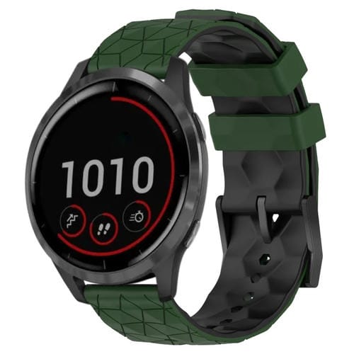 Para Garmin Vivoactive4 22mm Patrón de Fútbol Banda de Reloj de Silicona de Dos Colores (Verde Militar + Negro)