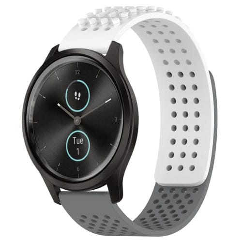 Correa de Silicona para Garmin Vivomove Style con Puntos 3D Transpirables y Orificios 20mm (Blanco + Gris)