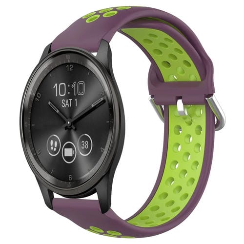 Banda de Reloj Garmin Vivomove Trend 20mm Silicona Deportiva Transpirable Perforada (Púrpura + Lima)