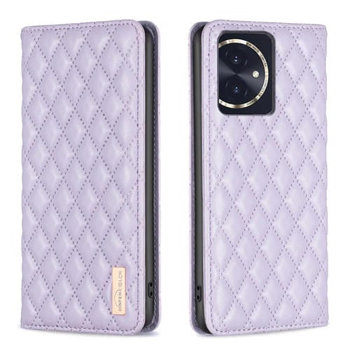 Funda para Honor 100 con Tapa de Cuero Magnético Diamond Lattice (Púrpura)