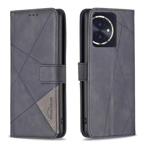 Funda para Honor 100 de Cuero con Textura de Rombo y Hebilla Magnética (Negro)