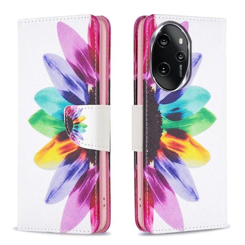 Funda de Cuero para Honor 100 Pro con Patrón de Dibujo de Colores (Flor del Sol)