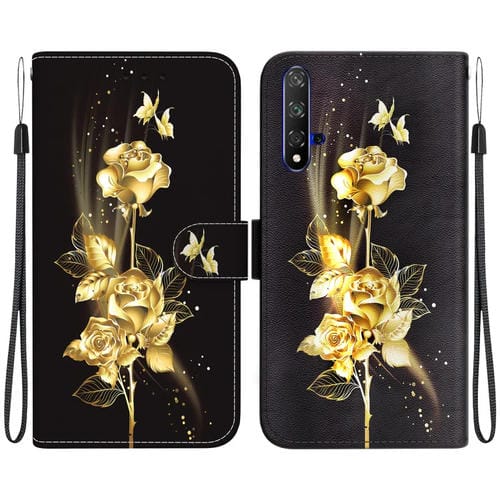 Funda de Cuero para Honor 20 Huawei Nova 5T con Dibujo Coloreado Textura Cristal (Mariposa Dorada Rosa)