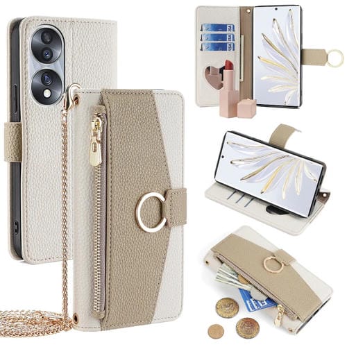 Funda Cruzada de Cuero para Honor 70 con Textura Litchi (Blanco)