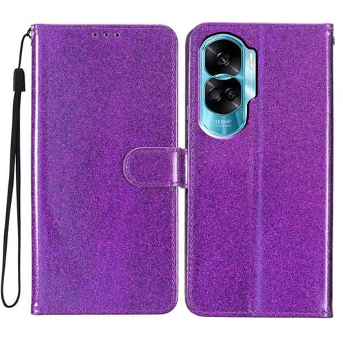 Étui en cuir à rabat en poudre scintillante pour Honor 90 Lite (violet)
