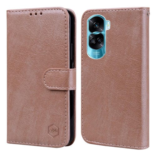 Funda para Honor 90 Lite con Textura de Cuero Aceitoso PU + TPU (Champán)